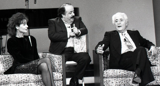 | Maurizio Costanzo con Elsa Martinelli e Mario Scaccia in una puntata del "Maurizio Costanzo show" (1987) |